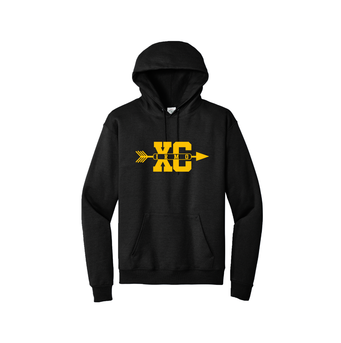 Black Hoodie with Irmo cross country design in Gold