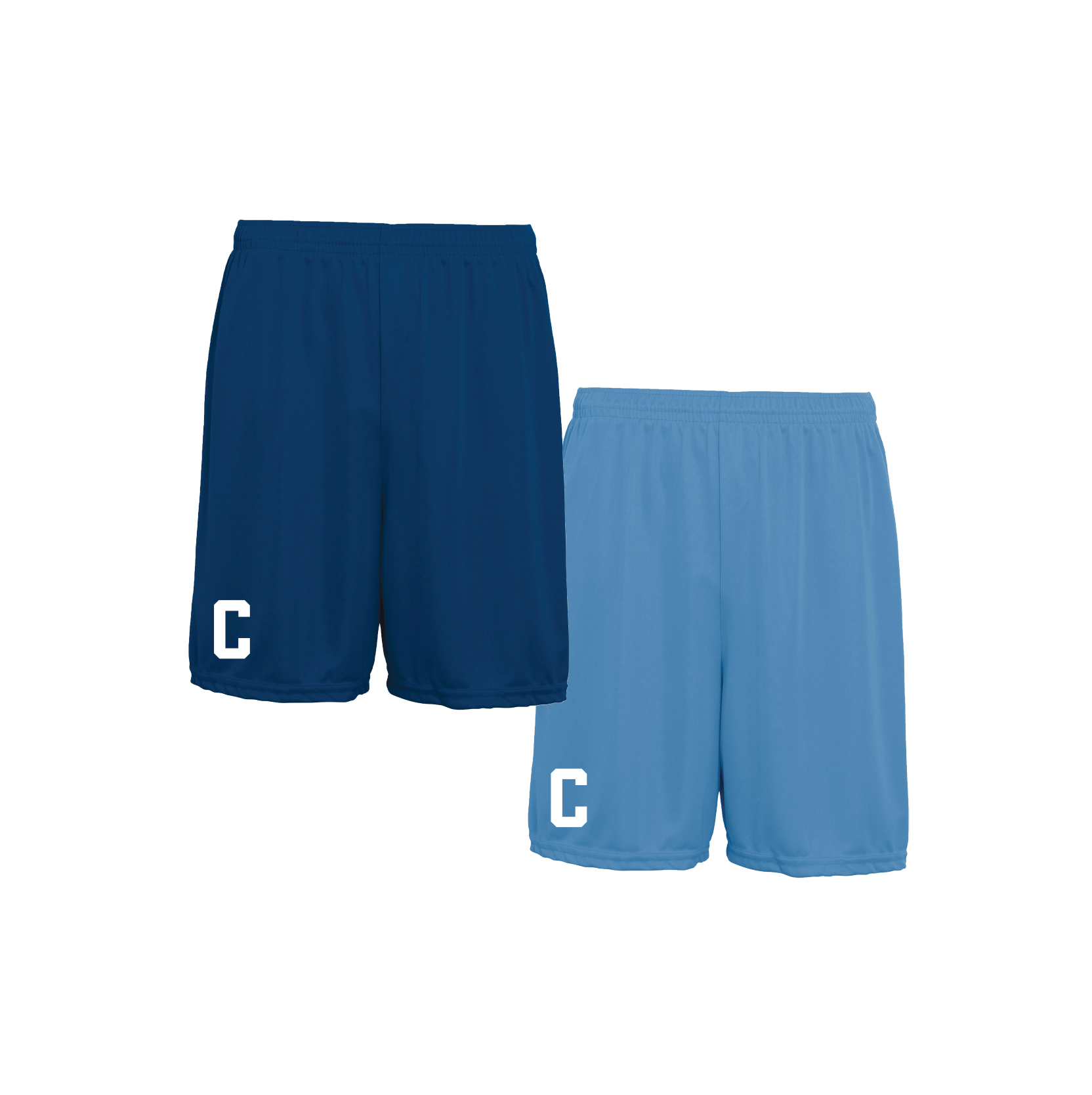Performance shorts (7-inch inseam) available in two different colors, Navy & Columbia Blue.